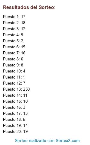 Resultados del sorteo: