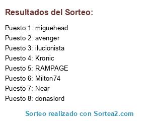 Lista de participantes: ilucionista, miguehead, donaslord, Milton74, RAMPAGE, Kronic, Near, avenger.