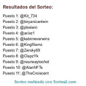 @acixz1, @isaac19822, @biryanicantwin, @TheCroiscent, @nourwaytoohot, @Kit_734, @Rafaell47058994, @Zeroky69, @KingSlamz, @plssiwin, @ClapzYk, @ghost_dragon117, @kabirneverwins, @AlanNFTs.