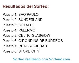 Lista de participantes: GIRONDINS DE BURDEOS, REAL SOCIEDAD, PALERMO, SAO PAULO, SUNDERLAND, STOKE CITY, GETAFE, CELTIC GLASGOW.