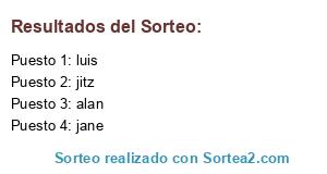 Lista de participantes: alan, jane, jitz, luis.