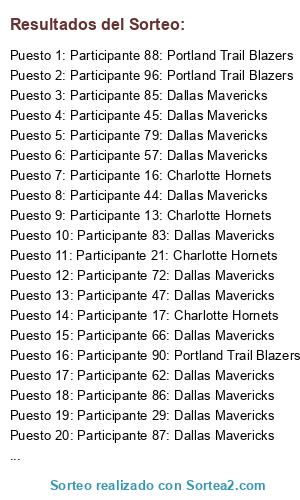 - Puesto 1: Participante 88: Portland Trail Blazers