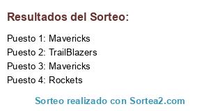 Lista de participantes: Lakers(13), Mavericks(42), Rockets(21), TrailBlazers(46).