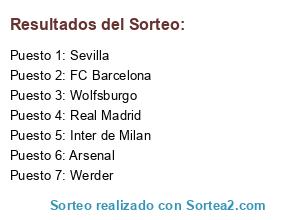 Lista de participantes: FC Barcelona, Inter de Milan, Sevilla, Wolfsburgo, Arsenal, Real Madrid, Werder.
