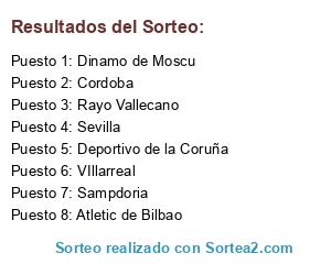 Lista de participantes: Atletic de Bilbao, Sampdoria, Deportivo de la Coruña, Rayo Vallecano, VIllarreal, Cordoba, Dinamo de Moscu, Sevilla.