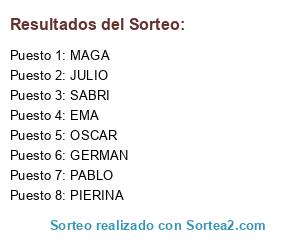 Lista de participantes: SABRI, OSCAR, GERMAN, MAGA, PIERINA, PABLO, EMA, JULIO.