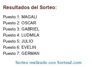 Lista de participantes: OSCAR, GERMAN, MAGALI, LUDMILA, GABRIEL, JULIO, EVELIN.