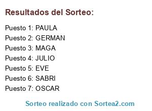 Lista de participantes: MAGA, PAULA, EVE, SABRI, OSCAR, GERMAN, JULIO.