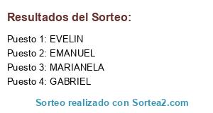 Lista de participantes: MARIANELA, GABRIEL, EMANUEL, EVELIN.