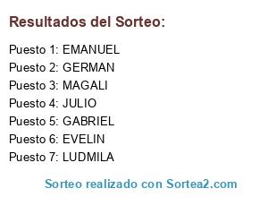 Lista de participantes: GERMAN, MAGALI, LUDMILA, GABRIEL, EMANUEL, JULIO, EVELIN.