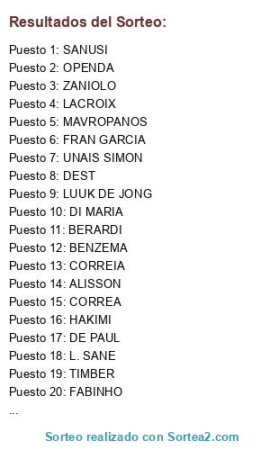 Resultados del sorteo: