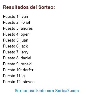 Lista de participantes: ronald, g, andres, jack, juan, lionel, jerry, darfer, steven, ivan, daniel, open.