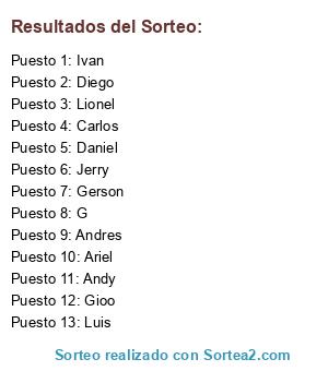 Lista de participantes: Daniel, Carlos, G, Ivan, Ariel, Andres, Jerry, Lionel, Andy, Gioo, Gerson, Diego, Luis.