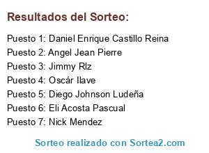 Lista de participantes: Jimmy Rlz, Nick Mendez, Oscár Ilave, Diego Johnson Ludeña, Eli Acosta Pascual, Angel Jean Pierre, Daniel Enrique Castillo Reina.