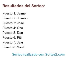 Lista de participantes: Jose, Jaime, Dani, Javi, Oso, Juanan, Santi, Piti.