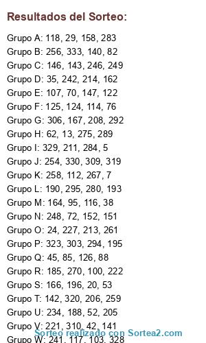 Resultados del sorteo: