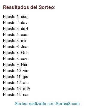 Resultados del sorteo: