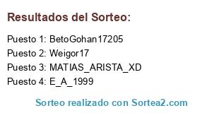Lista de participantes: X-Alfredo_Style-, Revolutionibus-, MTRG3TNRKJ56, IRadec_-X-, Titis791, T2010KF300, Froilan_123456, ll-Noeelia17-Gt, Weigor17, Marcoslipes, DAMIAN-ARISTA999, JoSe_KinG-StyLe, FloZMiN49, MATIAS_ARISTA_XD, BlaCkBeNzZ-, GAMEPLAY20177, Azkaaban-, ElMartin_Newells, SmoKe-_DanieL, albertoacerox999, E_A_1999, Uncharted2015-10, Xx-DaMiaN-XD, Smallville_MESSI, OmnimonX1, Jesasti, Xx_Charlie57_xX, hnyr123, thetekken84, Plao25, BetoGohan17205, Vamper_hunter_X, Nathan_Darks-ll, chinolocura2013, Tata_XsTyLe-PrO, Schizoid_X3, THEMONSTER-_-666, Uills_Arrow_-99, BIack_99, Dark_wolf.