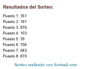 Este sorteo ha sido certificado por Sortea2. Sortea2 garantiza que: