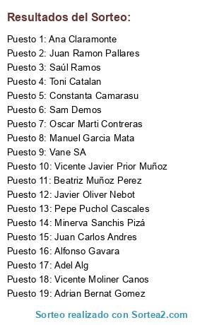 Lista de participantes: Manuel Garcia Mata , Sam Demos , Adel Alg , Constanta Camarasu , Vicente Javier Prior Muñoz , Alfonso Gavara , Juan Ramon Pallares , Beatriz Muñoz Perez , Minerva Sanchis Pizá , Vicente Moliner Canos, Ana Claramonte , Javier Oliver Nebot , Vane SA, Oscar Marti Contreras , Adrian Bernat Gomez , Juan Carlos Andres , Saúl Ramos , Toni Catalan , Pepe Puchol Cascales.