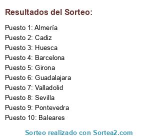 Lista de participantes: Pontevedra, Almería, Valladolid, Guadalajara, Girona, Baleares, Sevilla, Barcelona, Huesca, Cadiz.