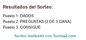Lista de participantes: DADOS, PREGUNTAS (2 DE 3 GANA), CONSIGUE.