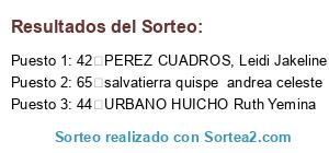 Lista de participantes: 1 Vega Gutierrez Erika Marisol, 2 Rodriguez Ochoa Dante Amilca, 3 Farfán Pariona María Mercedes, 4 Palomino Cahuana Lisbeth, 5 Quispe Oré Karell Yadira, 6 Martinez Gómez Noemí, 7 Katy contreraz Zegarra, 8 Yesica cabrera Espino, 9 Miguel muñoz Chavez, 10 Anyel alagon Cruz, 11 Jhans rojas Vivanco, 12 Maycol Javier Yanasupo, 13 Ayala Curi Pamela Daisy, 14 ONOFRE POMA Jenifer Scarlet Noelia, 15 MUCHA QUIHUI, Daniel Oswaldo, 16 GAVILAN BARBOZA, Zuriant Nayelli, 17 HUARANCCA LECHE, Shalom Edgar, 18 BARRIOS ORTIZ, Damaris Marleny, 19 Fire Del Rosario Gutierrez Bautista., 20 Raúl David Galindo Acra., 21 Yohana Luz Mendoza Palomino, 22 Ángela Roxana Solis Bedriñana, 23 Deyvis Roly Landeo Lapa, 24 Russvel Efrain Quispe Ramos, 25 Arnold Aníbal Gutiérrez Calderón, 26 Chuchon Mendez, Shaday Katerine, 27 Morales Huarancca yomer, 28 Ronal Sandoval Torres, 29 Tineo Dipaz Yennifer, 30 Frecia Marlene Barrientos Pérez, 31 Curo Quintero, Nayeli Andrea, 32 Apolaya Gómez, Iván Jhonel, 33 Aroni Ramos, Kenia, 34 Medina Uyhua, Ruth Yohana, 35 Tanta Sulca, Lizbeth, 36 Cauchos López, Jesús andre, 37 Edwin Eriber Huaman Quispe, 38 PILLHUAMAN HUANCAHUARI, Kelly Lizeth, 39 Velarde Condo Maryorith Gianella, 40 CUADROS LONASCO jaqueline kassandra, 41 VIVANCO DÍAZ, Flor Marvid, 42 PEREZ CUADROS, Leidi Jakeline, 43 Nuñez Gala María Victoria, 44 URBANO HUICHO Ruth Yemina, 45 MEDINA SÁNCHEZ Jhakeline, 46 ORELLANA NOLASCO, Doriza Guiselle, 47 ARONES GUTIERREZ, Bryan Alexis, 48 PILLACA MENESES, Cayo Roussine, 49 Flor María Quicaño Gomez, 50 Gerardo Gambo López, 51 Franklin Leonidas Ochante Chuchon, 52 Iván Esteban Huarancca Quispe, 53 Russell Yupa Palomino, 54 Miriam Melissa Evanan Quicaño, 55 FLORES MITMA ZONIA, 56 Rodas Urbano Grelly yosselyn, 57 urbano Flores Ruth Angelica, 58 VEGA CURIÑAUPA, Jhon David, 59 VILCA SURCO María Mercedes, 60 Sánchez Escriba Elfer Rubén, 61 Aguila Medina Yessica Rosalinda, 62 Henrry Barzola Ramos, 63 YAGUILLO VICAÑA WILMER, 64 LAPA MUÑOZ, Macedonio, 65 salvatierra quispe andrea celeste, 66 YAN BEKER, ZAMORA BELLIDO, 67 GODOY AVALOS, Nancy Karina, 68 MERCADO GONZALES, Maricielo, 69 NOA REDULFO, LUZ KARINA, 70 SARAS DELGADO, YAQUELIN RUTH, 71 Romero Arangoitia Bryan, 72 Rosalí Tacas Gonzales.