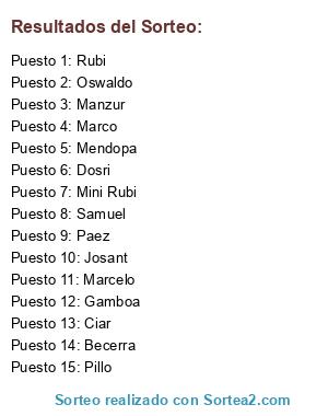 Resultados del sorteo: