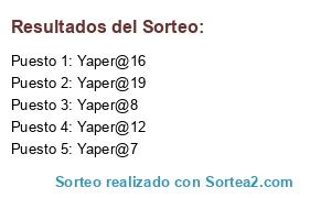 Lista de participantes: Yaper@1, Yaper@2, Yaper@3, Yaper@4, Yaper@5, Yaper@6, Yaper@7, Yaper@8, Yaper@9, Yapero10, Yaper@11, Yaper@12, Yaper@13, Yaper@14, Yaper@15, Yaper@16, Yaper@17, Yaper@18, Yaper@19, Yaper@20.