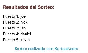 Lista de participantes: joe, nick, kevin, ian, daniel.