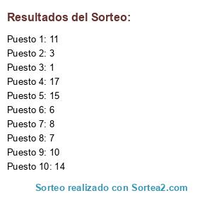 Lista de participantes: 1, 2, 3, 4, 5, 6, 7, 8, 9, 10, 11, 12, 13, 14, 15, 16, 17.