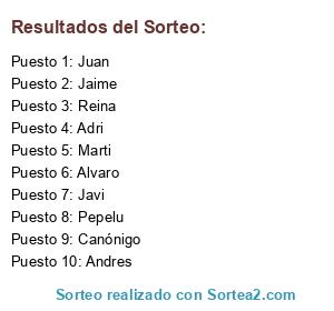 Resultados del sorteo: