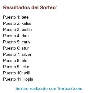 Lista de participantes: jeke, llopis, tete, silver, kelus, tito, carly, dani, peibol, will, stur.