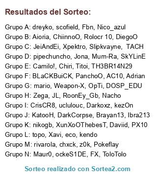 Lista de participantes: mario, z0k, TACH, Maur0, Daviid, dreyko, Camilo!, Nacho, DOSP_EDU, Xpektro, Mum-Ra, Zega, eco, Slipkvayne, Nico_azul, JL, Ibra213, PX10, scofield, Brayan13, Rolocr 10, XunXoOThebesT, topo, AC10, Adrian, kezOn, Darkoxz, Pokeflay, uclulouc, Weapon-X, ChiinnoO, BLaCKBuiCK, SkYLinE, FX, ockeS1DE, Titoi, rivarola, KatooH, pipechuncho, Chiri, DiegoO, Jona, TH3BR14N29, Xavi, kendo, DarkCorpse, ToloTolo, CrisCR8, Fbn, JeiAndEi, RoonEy_Gb, chxck, nikogb, OpTi, PanchoO, Aioria.
