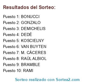 Lista de participantes: KOSCIELNY, RAÚL ALBIOL, BONUCCI, GONZALO, BRAMBLE, DEMICHELIS, VAN BUYTEN, DEDÉ, M. CÁCERES, RAMI.