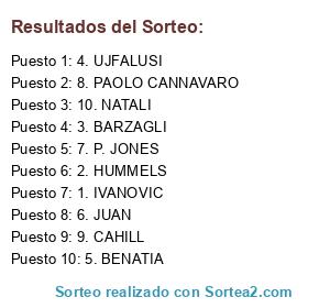 Lista de participantes: 1. IVANOVIC, 2. HUMMELS, 3. BARZAGLI, 4. UJFALUSI, 5. BENATIA, 6. JUAN, 7. P. JONES, 8. PAOLO CANNAVARO, 9. CAHILL, 10. NATALI.