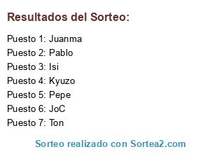 Lista de participantes: Pepe, Pablo, JoC, Isi, Kyuzo, Delirio, Juanma, Ton.