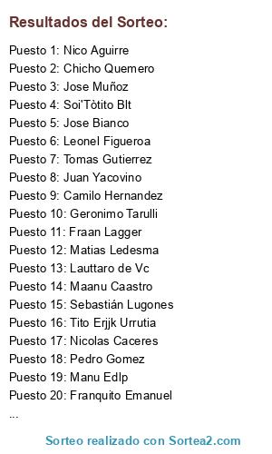 Resultados del sorteo: