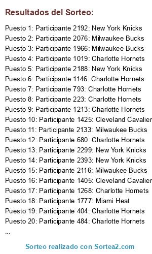 - Puesto 6: Participante 1146: Charlotte Hornets