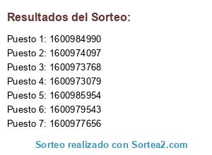 Resultados del sorteo: