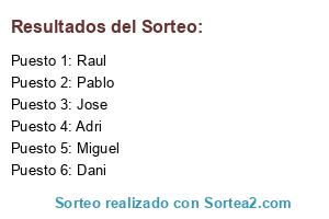Lista de participantes: Adri, Pablo, Jose, Dani, Miguel, Raul.